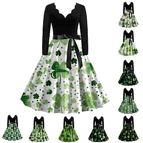 São Patrício 2026 Vestidos Vestido de uma linha Vestido de chá Anos 50 Inspirado no vintage Vestido Coquetel Adolescente Adulto Mulheres dia de São Patrick Reunião de Classe Roupa Diária Festa de