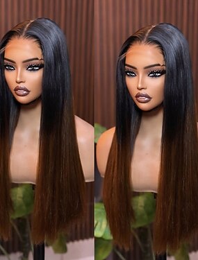 Cabelo Humano Fechamento 5x5 13x4 Lace Front Peruca Parte do meio Cabelo Brasileiro Liso Marrom Peruca 150% 180% Densidade do Cabelo com o cabelo do bebê Cabelo Ombre 100% Virgem Sem cola Pré-depenado