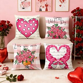 Capa de almofada com estampa digital de coração rosa e flor para o Dia dos Namorados, perfeita para criar uma atmosfera festiva, ideal para casas decoradas, hotéis, festas e como almofada decorativa