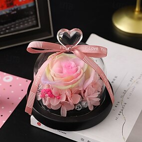 Rosa verdadeira preservada em uma linda cúpula de vidro com design criativo de coração, um presente perfeito para ela.