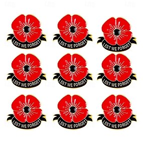 Conjunto de 9 broches requintados para o Dia da Memória, incluindo um alfinete em forma de papoula vermelha com strass e esmalte, um distintivo comemorativo e uma joia em homenagem aos veteranos
