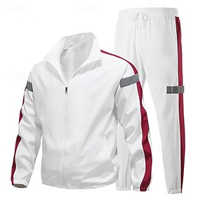 Homens Agasalho de 2 peças Conjuntos de moletom Roupa de Esporte Zip Up Banda Refletora Cor Sólida Conjuntos Primavera Outono Preto Branco Academia Exercite-se Corrida Cintura Alta Leve Da Moda Manga