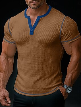 Homens Camisa Waffle Henley Camisetas Manga Curta Henley Verão Todas as Estações Côr Sólida Moda Designer Casual Patchwork Botões Ao ar livre Casual Diário Branco Azul Amarelo Top Tee para Homens