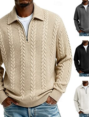 Homens Xadrez Moletom Moda Diário Clássico Casual Manga Longa Colarinho Chinês Quarter Zip Ao ar livre Casa Escritório Trabalho Azul Roxo Verde Zip Up Outono Inverno Designer S M L XL XXL XXXL