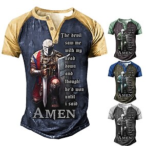 Camiseta Gráfica de Fé para Homens Guerreiro Cavaleiro 'O Diabo Me Viu Até Eu Dizer AMEN' Camiseta Motivacional Manga Curta