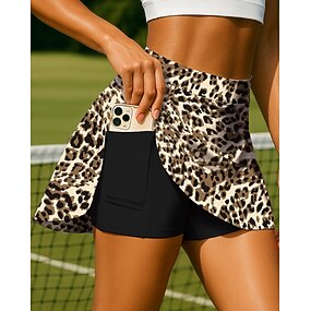 Mulheres Animal Leopardo Saia casual Saia de tênis Patchwork Bolsos 2 em 1 UPF50+ Resistente a UV Multicamada Voleibal Tênis Badminton Calção Saias Azul Roxo Azul Escuro Roupas de tênis