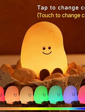 Luminária de silicone macia em formato de batata, estilo criativo, na cor branca quente. &Abajur de LED com mudança de cor, 3 níveis de brilho, temporizador, recarregável via USB-C, luz ambiente para