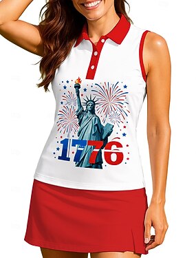 250º Aniversário da América Dia da Independência Mulheres Carta e Número Bandeiras Camisa polo de caminhada Sem Manga UPF50+ Resistente a UV Respirável Tênis Exercicio Exterior Pickleball Gola