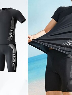 Homens Rash Guard de 2 peças Camisa de surf Calções de banho Gráfico Proteção Solar UV Secagem Rápida Manga Curta Roupa de Banho Praia Esportes Aquáticos Natação Verão