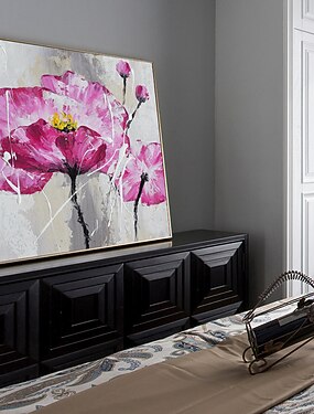 Pintura a óleo pintada à mão arte de parede abstrata flores vermelhas com vaso pintura em tela decoração para casa decoração moldura esticada pronta para pendurar