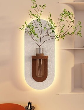 Tudo pendurado em vaso de vidro, arte de parede em arenito com luz LED, decoração de planta de parede para sala de estar, adequada para quarto, escritório, hotel