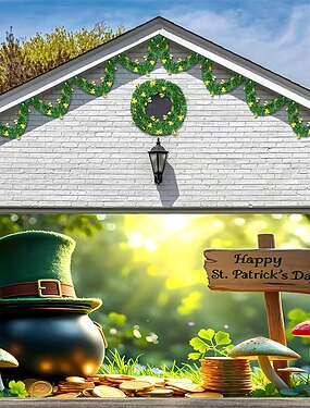 Dia de São Patrício tapeçaria Tampa da porta da garagem Grande pendurado Elfo Animal Estilo bonito 3D De Festa Exterior Férias Fundos de fotografia Jarda Decoração de casa