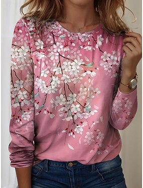 Camiseta Feminina de Manga Longa Cor Sólida Elegante Casual Manga Longa Gola Redonda Tops Regulares Impressão Diária Botões Preto Amarelo Vermelho Azul Primavera Pré Outono
