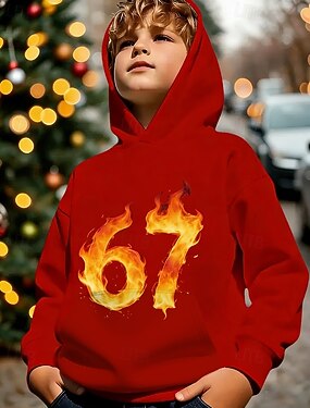 Unisexo 3D Gráfico Gírias engraçadas 67 Moletom Pullover Manga Longa Impressão 3D Primavera Outono Esportes Moda Roupa de rua Infantil 4-12 anos Com Capuz Casual Diário Ao ar livre Normal