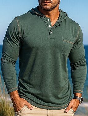 Homens T-shirt Camisa de manga longa Manga Longa Capuz Verão Côr Sólida Diário Havaiana Botões Com Capuz Ao ar livre Rua Casual Azul Claro Verde Militar Cinzento Escuro Top Tee para Homens