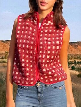 Mulheres Blusa Zíper Xadrez Elegante Vintage à moda Sem Manga Gola Alta Tops regulares Feriado Para Noite Azul Preto Vermelho Verde Inverno