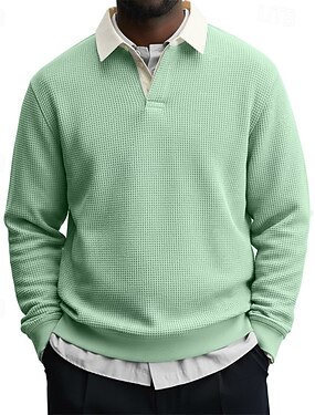 Homens Camisas Polo Waffle Camisa de golfe Trabalho Casual Lapela Manga Longa Básico Moderno Tecido Botões Primavera Outono Normal Azul Verde Escuro Vinho Preto Branco Verde Claro Camisas Polo Waffle