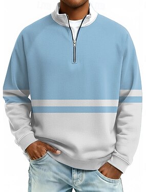 Homens Bloco de cor Camisas Polo com zíper Manga Longa Camisas polo colarinho do vovô Casual Escola Roupa Esportiva Feriado Roupa Diária Impressão 3D Polo com fecho de correr de um quarto Outono