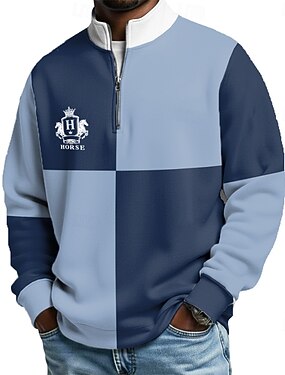 Homens Bloco de cor Camisas Polo com zíper Manga Longa Camisas polo colarinho do vovô Casual Escola Roupa Esportiva Feriado Roupa Diária Impressão 3D Polo com fecho de correr de um quarto Primavera