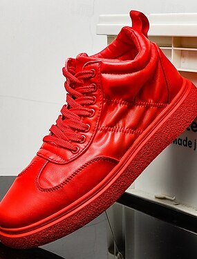 Tênis cano alto masculino vermelho – design respirável, estiloso e confortável, perfeito para esportes, uso casual e atividades ao ar livre.