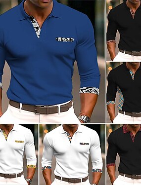 Homens Camisa de golfe Camisas Polos de Golfe Trabalho Casual Lapela Manga Longa Básico Moderno Bloco de cor Patchwork Botões Primavera Outono Normal Verde Escuro Preto Branco Verde Claro Azul Escuro