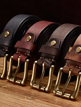 Homens Cinto Fivela Automática couro legítimo Cobre Roupa de rua Moderna Casual Lazer Côr Sólida Vermelho Vinho Preto Diário O negócio Formal Cinto para a Cintura