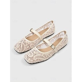Sapatilhas Mary Jane femininas brancas de renda - sapatilhas de bico quadrado respiráveis com detalhes florais em tule. &Tira de tornozelo para férias na ilha, casamentos na praia &roupas de resort de