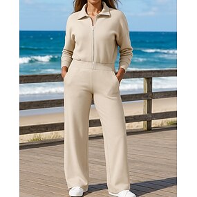 Mulheres Moletom de uma peça Trajes de lazer Bolsos Cor Sólida Conjuntos Outono Preto Branco Algodão Exterior Viagem Esportivo Pavio Humido Manga Longa Esporte Roupas Esportivas Micro-Elástica Normal