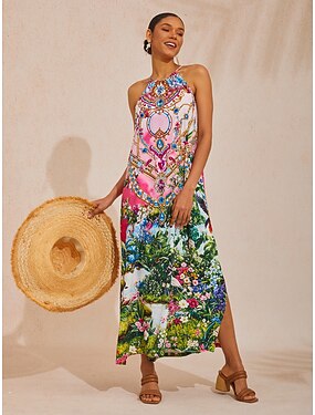 Vestido longo de chiffon para férias na terra das maravilhas