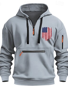 Homens Moletom Estacionar Quarter Zipper Hoodie Azul Preto Vinho Azul Marinha Camelo Com Capuz American US Flag Bolsos Imprimir Diário Desportos e Ar livre Feriado Roupa de rua Roupa de Esporte Casual