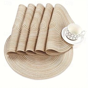 Pacote com 6 jogos americanos redondos de tecido, jogos americanos de mesa de jantar laváveis e antiderrapantes de 15 polegadas, decoração de mesa durável para cozinha e sala de jantar