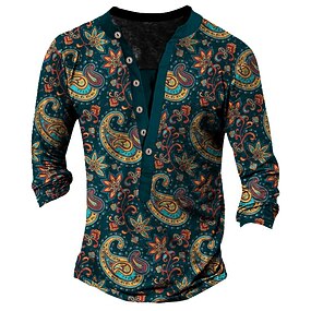 Homens Estampas Abstratas Estampa floral Camisa Henley Camisetas gráficas camisa vintage Manga Longa impressao 3D Moda Básico Casual Ao ar livre Férias Diário Primavera & Outono Vinho Azul Marinha