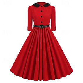 Retro Vintage Anos 50 Hepburn Vestido swing Vestido Flare Côr Sólida Fantasia Mulheres Dia Das Bruxas Baile de Máscaras Dia a Dia Festa de Solteira Adulto Vestido Vestidos de baile