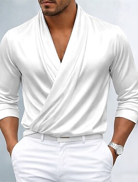 Homens Camisa Social Como seda Blusa de cetim Saia Camisa casual Camisa de formatura Tecido Casamento Formal Preto Branco Manga Longa Xaile Primavera Todas as Estações Roupa Enrole