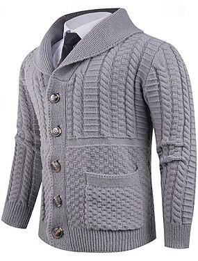 Homens Sueter Cardigan Suéter Cortado Suéter de malha Estriado Tricotar Tops regulares Bolsos Botões Tecido Lapela Xale Moda Clássico Férias Roupa Diária Roupa Outono Inverno Preto Cinzento Claro S M