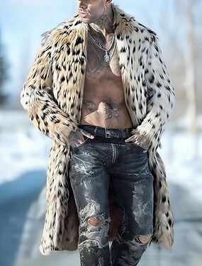 Homens Casaco de inverno Casaco de pele falsa Ao ar livre Casual Térmico / Quente Gola de lã Outono Inverno Leopardo Moda Roupa de rua Lapela Xale Longo cáqui Casaco