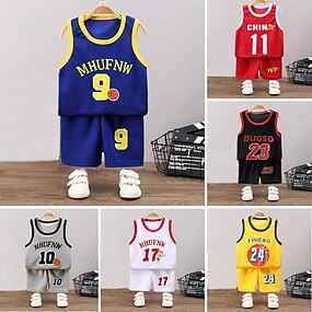 2 Peças Infantil Para Meninos Regata & Shorts Equipamento Desenho Animado Número Letra Sem Manga Crewneck Algodão Definir Ao ar livre Esportes Legal Verão Primavera 7-13 anos Preto Branco Amarelo
