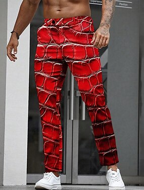 Homens Geométrica Estampas de Couro de Crocodilo Social Calças Calças de Terno Cintura Média Casual Ao ar livre Feriado Calças retas com bolsos Primavera Outono Impressão 3D Vermelho Caqui Azul Escuro