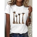 Mulheres Camiseta Camisa de algodão Imprimir Animal Letra Casual Manga Curta Decote Redondo Tops regulares Diário Branco Verão |