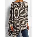 Blusa Feminina Hem Assimétrica Básica Estampa Abstrata Manga Curta Longos Tops Decote Redondo Casual Prata Preto Branco Azul Caqui |