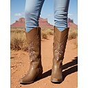 botas de cowboy femininas bordadas marrons com cadarço acima do joelho, estilo western para roupas casuais e eventos country |