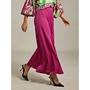 Calças femininas de perna larga, cor vinho, cetim, bolso, férias, casual, diário, primavera, verão, outono |