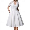 Vintage Anos 50 Vestidinho Branco Vestido na altura do joelho Casamento Cor Sólida Linha A Decote V Fantasia Mulheres Baile de Máscaras Casamento Chá de Cozinha Festa de Solteira Adulto Vestido |