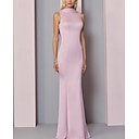 Vestido de Festa Tubo de Praia Vestido Elegante Convidada de Casamento Envolvimentos Comprimento do Chão Sem Mangas Gola Alta de Cetim Costas em V com Pregas |