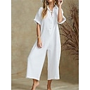 Mulheres Normal Macacão Roupa de rua Côr Sólida Meia Manga Colarinho de Camisa Botões Diário Feriado Normal Preto Branco Cáqui Verão |