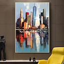 Pintura a óleo feita à mão em tela, arte de parede, decoração abstrata, paisagem arquitetônica urbana para decoração de casa, moldura esticada, pintura pendurada/pintura enrolada sem moldura, não |
