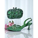 Conjunto de sapatos de salto alto verde com strass e bolsa clutch feminina - elegantes scarpins slingback e bolsa para coquetéis e ocasiões formais |