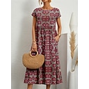 Mulheres Vestido maxi longo Vestido de turno Vestido casual Vintage Básico Diário Férias Final de semana Normal Floral Manga Curta Gola Redonda Azul Vinho Verde Verão Primavera |