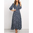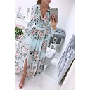 Mulheres Vestido Longo Vestido Maxi Vestido Coquetel Vestido de chiffon Vestido estampado Moda Ao ar livre Festa de Chá Final de semana Normal Flor Manga Longa Decote V Rosa Roxo Azul Claro Verão |