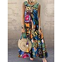 Mulheres Normal Vestido Longo Vestido Boho Vestido de linho de algodão Elegante Vintage Praia Normal Gráfico Sem Manga Gola Redonda Vermelho Verde Verão |